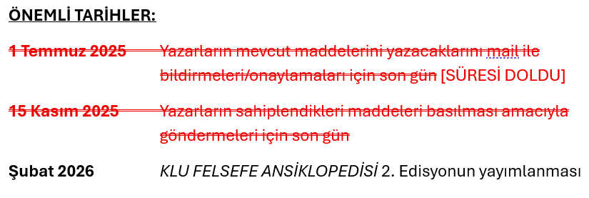 KLU Felsefe Ansiklopedisi, ülkemizde üniversiteli akademisyenler tarafından, internet üzerinden açık erişimli olarak tasarlanmış, gerçek anlamda profesyonel olan ilk çevrimiçi felsefe alan ansiklopedisi ve başvuru kaynağı projesidir. Proje, felsefeye ilgi duyan, terimler, kavramlar ve filozoflar ile ilgili bilgi almak isteyen herkes için uzmanları tarafından kaleme alınmış güvenilir bilgiye kolay ve hızlı erişim sağlamayı amaçlamaktadır. Şu an için ansiklopedide 23 farklı üniversiteden 73 akademisyenin katılımıyla yazılmış ve yazılmakta olan 300 civarında madde mevcuttur. Ancak ansiklopedinin içeriği her geçen gün genişleyecek ve gelişecek şekilde düşünülmüştür. Nihai amacı Türkçenin en geniş kapsamlı felsefe başvuru kaynağını oluşturmaktır.